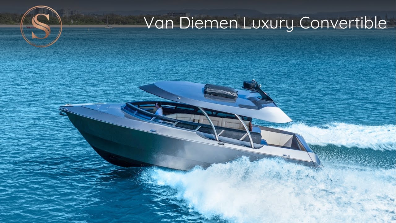 Van Diemen 36, QueenslandThis Luxury convertible 36 is the flagship vessel from Van Diemen. Custom designed and built, she features the patented convertible roof and windows harmoniously integrated into composite construction with precision engineering. Incorporating sea keeper gyroscopic stabilisation, the Luxury convertible exceed expectations in versatility and stability.